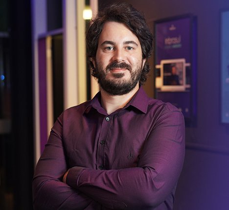 Seis roxos que desenvolvem diferentes soluções para os nossos clientes são liderados pelo Tiago. Conheça ele agora!